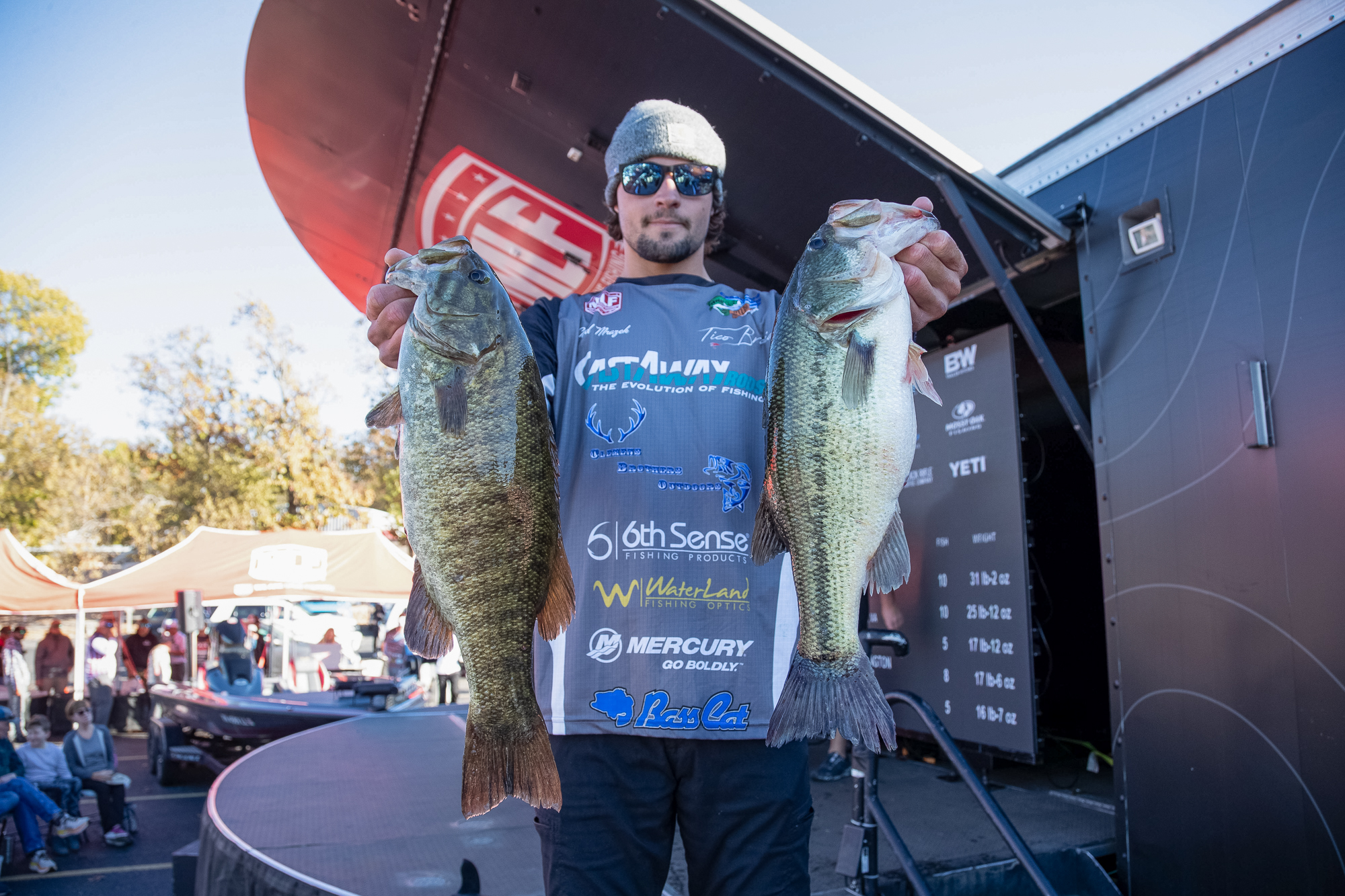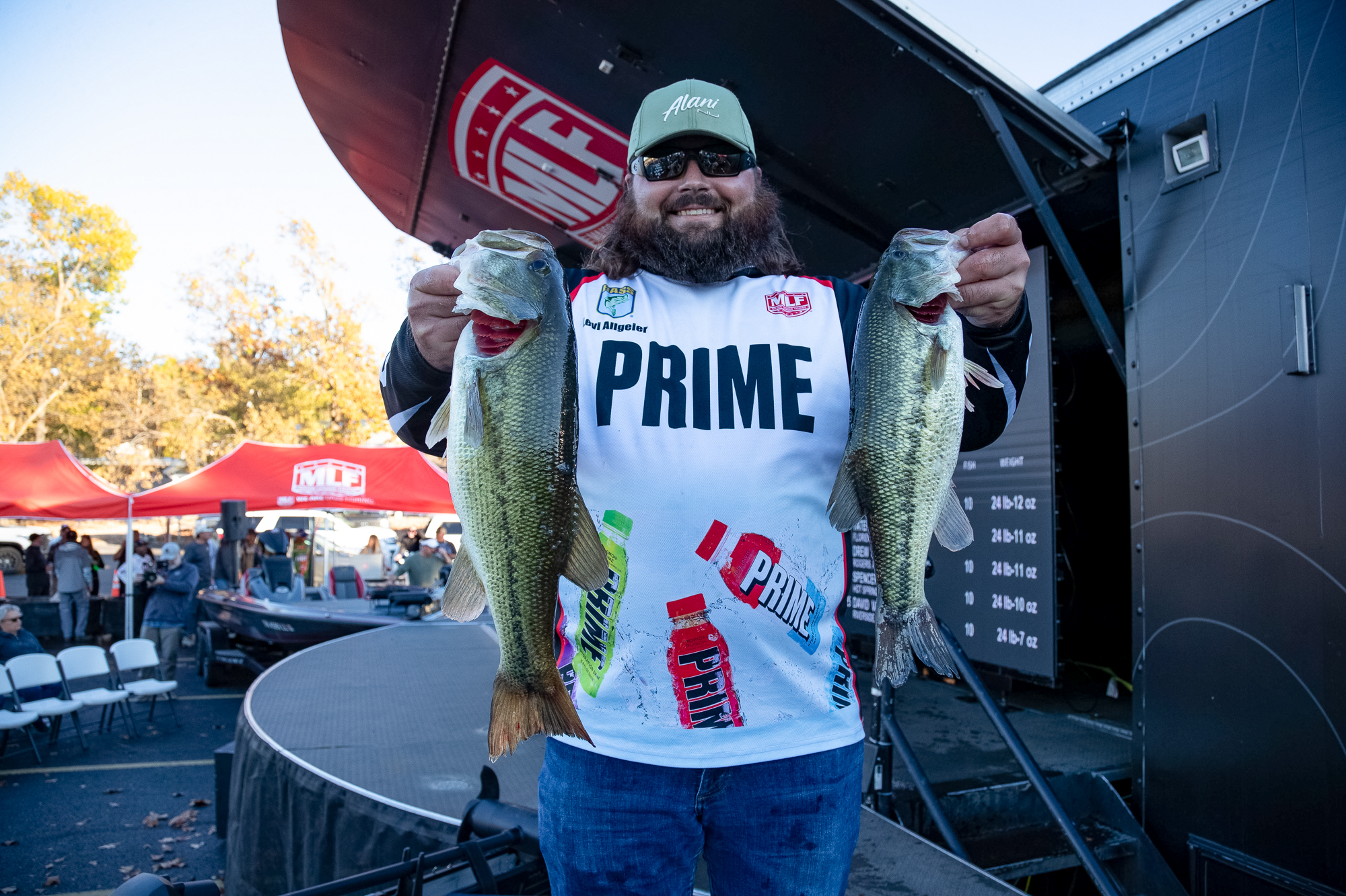 “Today was a little more my style,” Allgeier said. “We got in some shallower largemouth waters, and it treated me well. Yesterday was more open-water spotted bass, and I was able to catch a couple. But today was up my alley, how I like to fish, and we made it happen. I caught two with literally minutes to go, and one on my last cast. I could tell it was my day.”