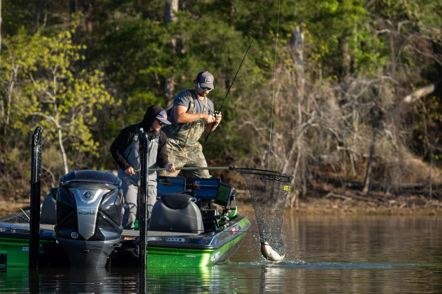 From there, Reynolds ran to another staging area and caught two more in the 5-pound range. With the morning bite fading, he switched gears to targeting individual fish using Garmin LiveScope. Around 12:40 p.m., when he caught a 6-pounder on an Alabama rig, he admitted to himself that his lead was safe. He strapped down his rods and spent the rest of the afternoon around the bank, trying to help his co-angler catch a limit.