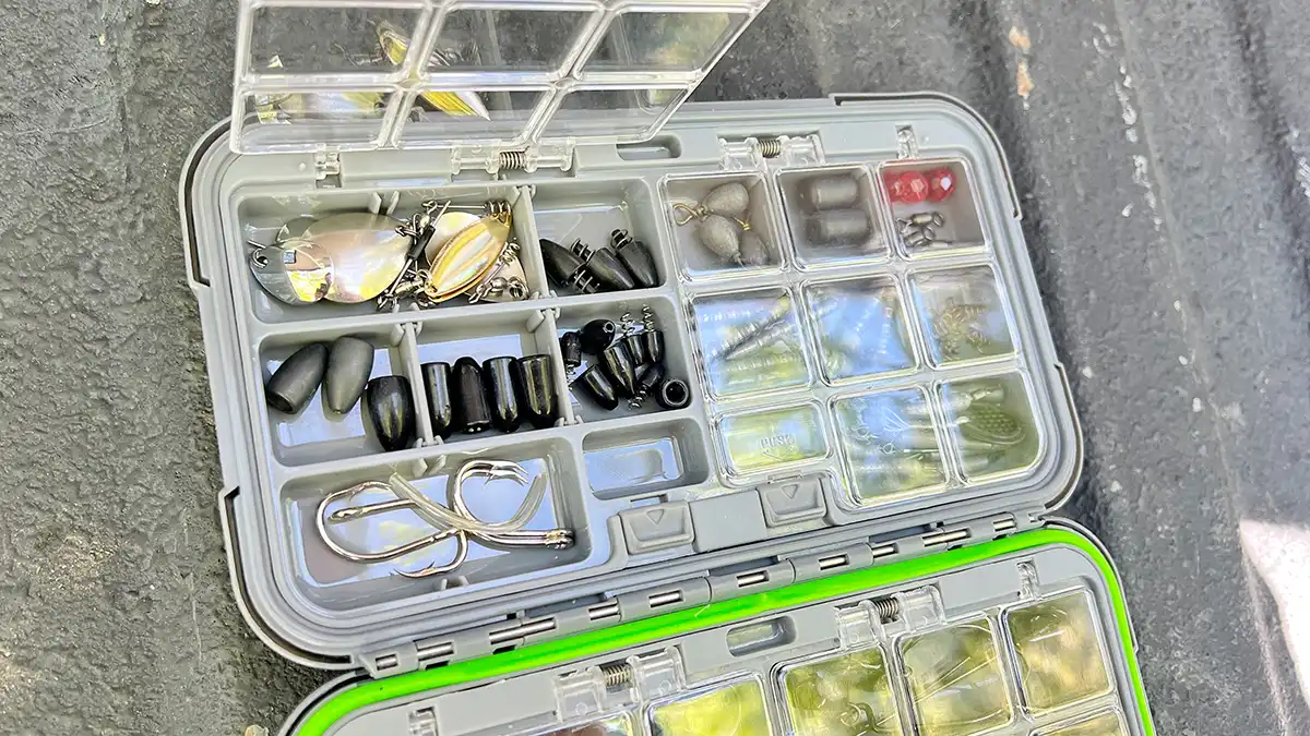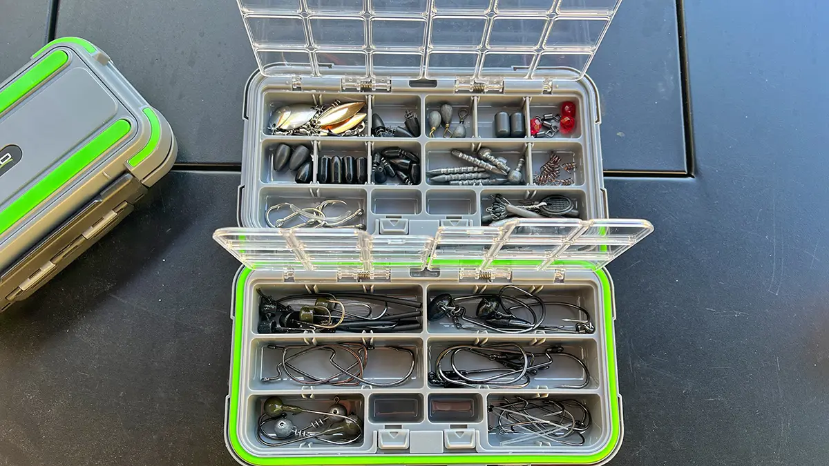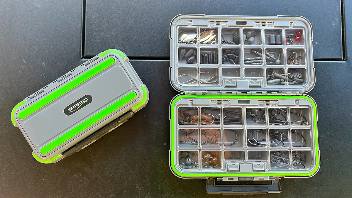 There are three different sizes in the SPRO Terminal Tackle Box: small, medium and large. Prices vary by size from $19.49 to $24.49. I took the large one and put together a little of everything I might need during a day on the water. We’re talking bobber stoppers, assorted weights, screwlocks, Carolina rig components, a few of my favorite hooks and even a couple Tokyo rigs, wobbleheads, shakyheads and Ned rigs.