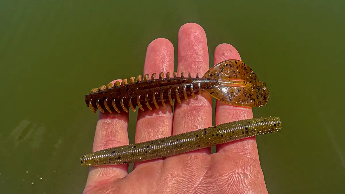 Bait selection is another important factor when targeting fish on bed. I tend to keep my options fairly simple, mainly rotating between three basic baits. These three baits consist of a wacky rigged stick bait, Texas rigged creature bait and a larger sized swimbait. I generally start out using a wacky rigged stick bait such as the 5-inch Yamamoto Senko. This bait is non intrusive and perfect for making long accurate casts at finicky fish. I like to cast a few feet past the bed, then slowly work it into the strike zone. After making a few casts with the Senko, I’ll then switch over to a Texas rig. One of my favorite baits to use in this scenario is a white Zoom Z-Craw Jr. I’ll make repetitive casts into the bed trying to aggravate the fish into biting. Keeping your bait stationary in the bed and shaking your rod vigorously is a great way to get these fish to react.