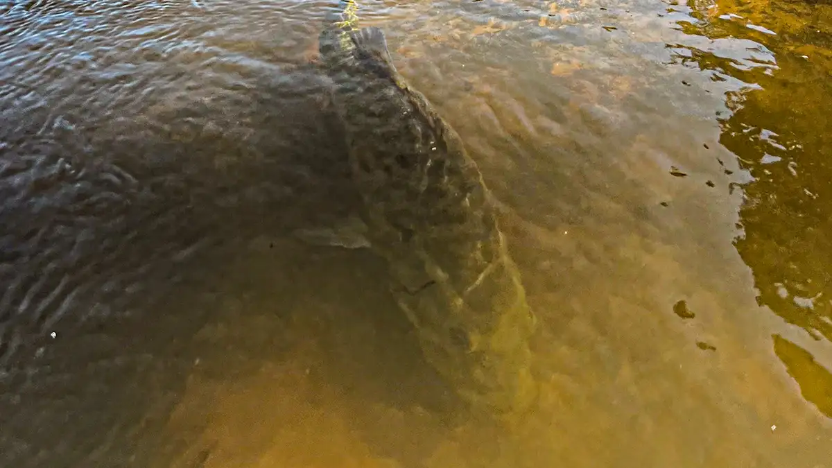 Finding a bed is the next piece of the puzzle. These beds are often located next to shallow cover in protected areas of the lake. Shallow pockets and coves are your best bet for quickly locating a bed. Using good polarized glasses is essential for cutting out glare and locating hard to see beds. Pollen is another factor that can limit your visibility when looking for beds. One good trick to eliminate this issue is bringing a spray bottle with a mix of water and Dawn dish soap. Spraying this on the water will quickly clear out any floating sediment, greatly increasing your visibility.