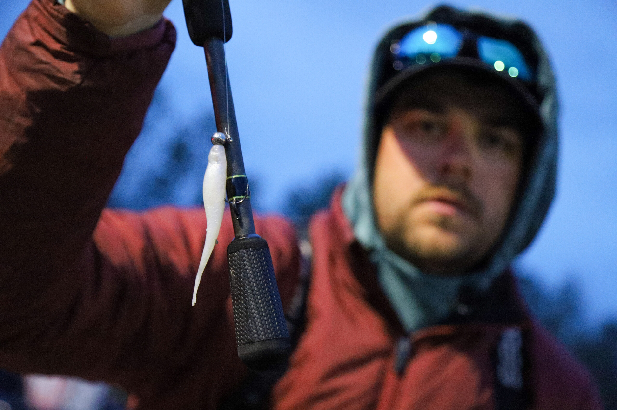 While he did catch a few near the bank on a Neko rig during the Knockout Round, the jighead minnow bite accounted for nearly all of Hatfield’s bass.