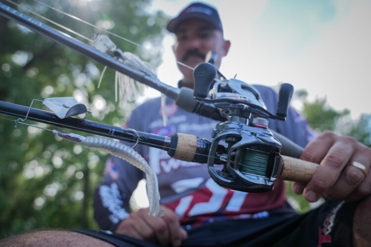 2. Steve Lopez also took the trip up to Pool 7, and it paid off big for him. Lopez also went to work with a 5-inch green pumpkin weightless wacky rig, letting it drift slowly through the grass to initiate strikes. Lopez utilized a 7-foot, medium-action Duckett Jacob Wheeler Series spinning rod, noting that the softer action helped keep fish pinned while using 15-pound braided main line to a 10-pound P-Line Tactical Fluorocarbon leader.