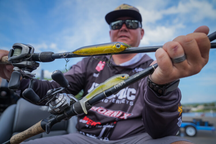 8. Putting up his second straight Top 10 finish on the Tackle Warehouse Invitationals, Cody Meyer did his damage by staying in Pool 8, deciding to stay close to takeoff in the Black River. Meyer utilized an Evergreen Justine 95 in the ice fish pattern on schooling fish that came up to bust around wing dams and isolated grass. He slung the Justine on a 7-foot, 3-inch, medium-heavy Daiwa Tatula Elite with an 8.1:1 Daiwa Tatula Elite with 40-pound Daiwa J-Braid. He followed up with a second offering of a Yamamoto Senko rigged weightless and wacky slung on a 7-foot, medium light, Daiwa Tatula Elite spinning rod and a Daiwa Tatula MQ 3000 spinning reel with 10-pound Daiwa J-Braid tied to 10-pound Daiwa J-Fluoro.