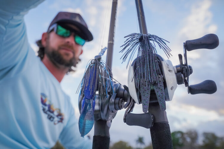 “I’ve been down here for a little bit, and I noticed they were spraying quite a bit,” he said. “Every time I brought my bait back up, I was bringing up dead reeds with it – they’re not gonna eat it unless they eat it on the way down, but Florida fish don’t seem that aggressive. Up north we power-shot in the grass; it can be the deal, so I tied one on. In the last three weeks, I’ve barely caught a fish on another bait.”