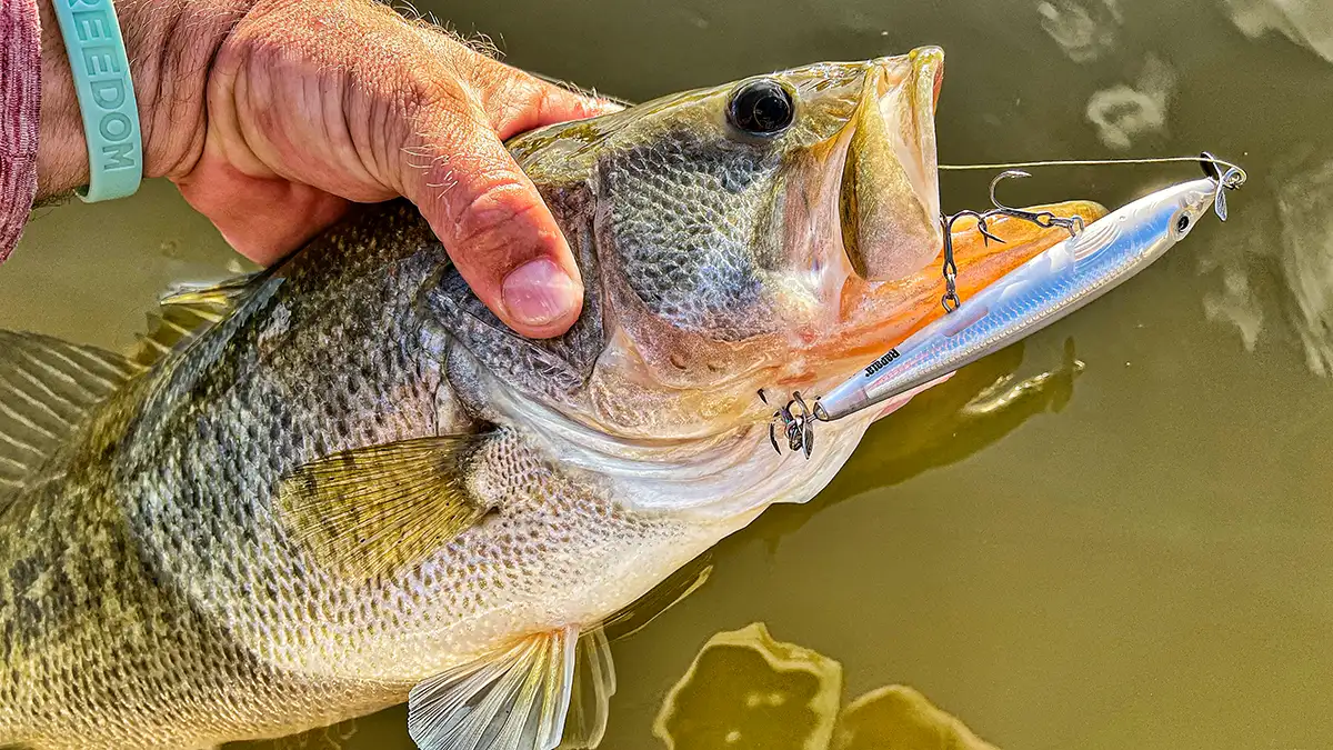 If you don’t feel comfortable fishing with braid, or for whatever other reason opt for monofilament, 15-pound test mono is a great place to start. It’s an effective line to fish with almost all small- to mid-sized treble hooked topwaters like Spooks and poppers. You might need to step up to 17- or even 20-pound test mono with some bigger baits. But the larger line will negatively impact the castability of the baits. And again, there are some baits situations in which mono simply doesn’t work.