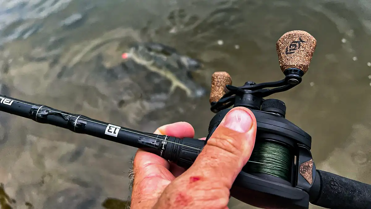 The reel selection is perhaps the simplest part. Something in the 7:1 gear ratio range will work well with most all topwater baits. You’ll never need anything slower for a topwater. But you may want to step up to something in the 8:0 range when fishing with reeling prop baits, like Whopper Ploppers and Choppos, or when targeting schooling fish.