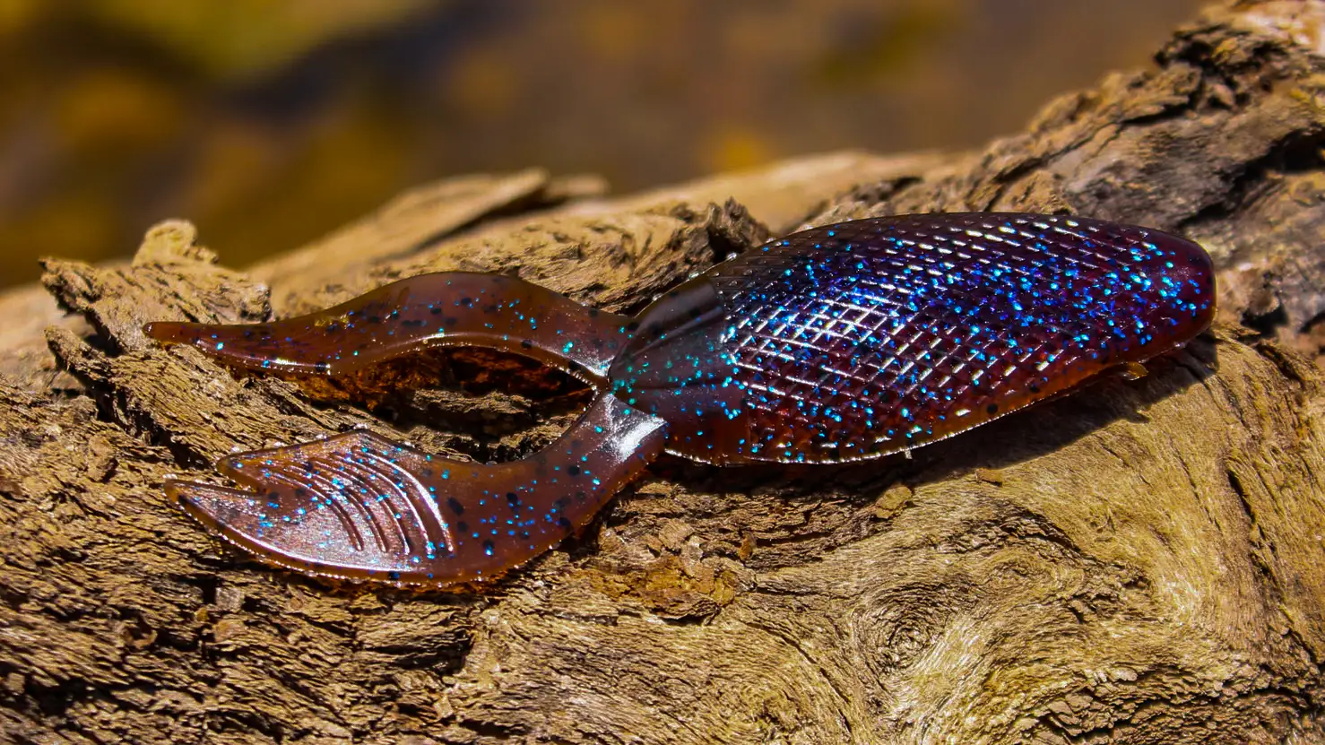 At 4 inches in length, the Sucka Punch is a good size to mimic a wide range of forage bass feed on. Available in 14 colors ranging from June Bug to Pearl White, there’s a color to match any hatch and an option for any water clarity. The material used to make the Sucka Punch is flexible but also durable, and fairly buoyant. The thin claws float up in a defensive posture when the bait sits on the bottom, and they sway back and forth with the slightest movement of the water.