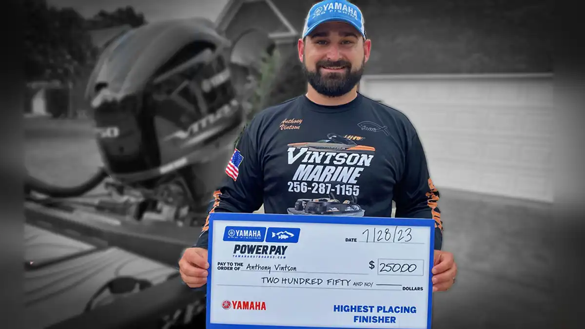 Anthony Vintson of northern Alabama helped put Yamaha Power Pay contingency payouts over the $1 million mark with his recent 7th place finish during a recent Alabama Bass Team Trail event on Wheeler Lake.