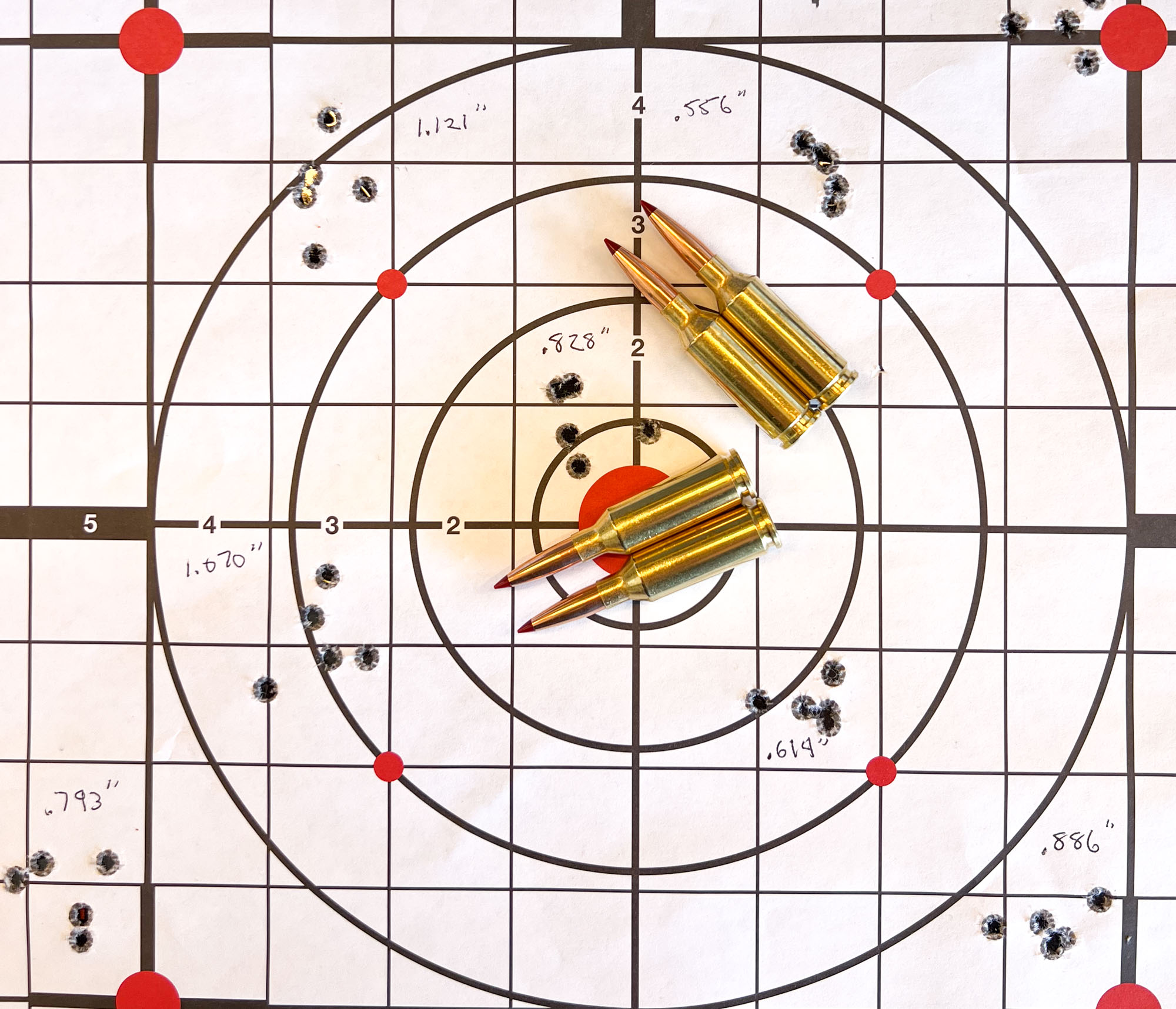 One thing that stuck out at me was how consistent all the groups were. Of the 16 groups, only two measured over one inch—1.107 and 1.121 inches. The best groups were .556 inches and .614 inches. Everything else fell neatly in between.