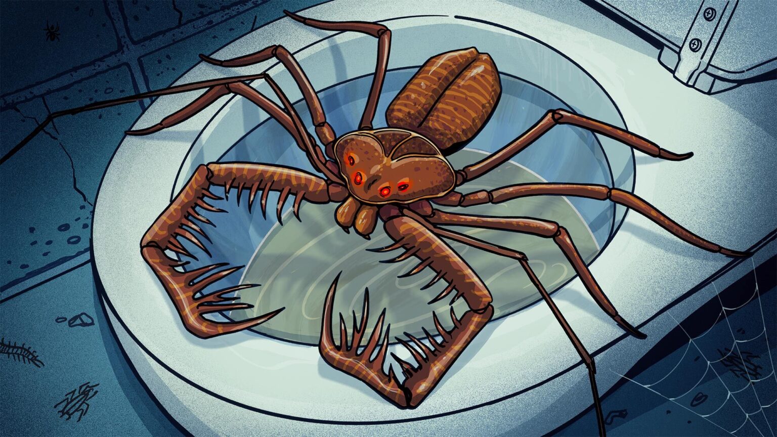 A: It was two in the morning in Mozambique, and I had to pee. I grabbed a flashlight, unzipped my tent, and stepped into an adjoining enclosed bathroom, zipping the tent flaps behind me to keep the bugs out. Standing there in my underwear, tinkling, I heard something behind the toilet tank, and when I shined the light, a monster emerged and scaled the wall. It looked like a cross between a spider and a crab and was just as black and just as large as a No. 9 cast-iron skillet.