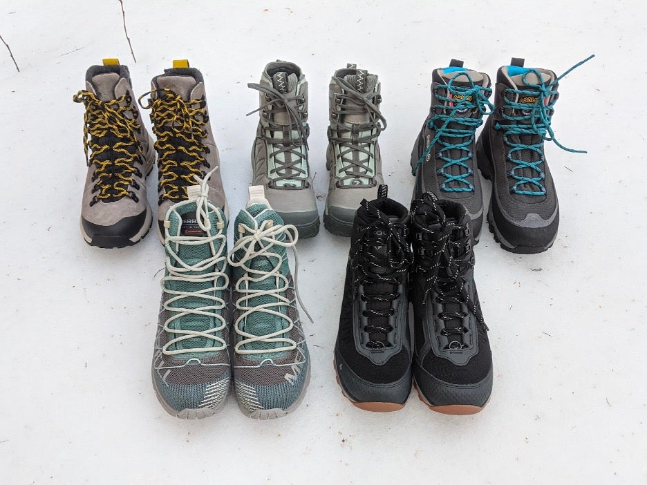 Next I checked their traction on icy surfaces. Finally, I checked the level of protection provided by the boot when I postholed through the upper crust of mid-morning snow. I also tested several winter hiking boots more than once (typically wearing a different boot on each foot) to get a better feel for their comparative performance.