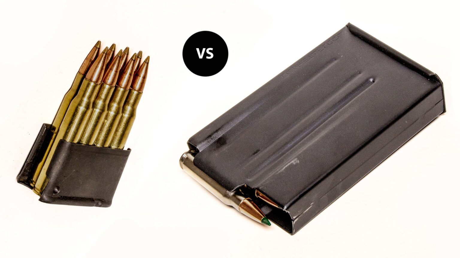 Internal magazines come in different forms. Some rifles, like pump-action 22s and many lever-action rifles, have a tubular magazine that’s attached under the barrel. Most, however, have an internal magazine that’s situated just below the action. If you load your hunting rifle by opening the bolt and pushing rounds down against a spring-loaded gate, then you are loading the rifle’s internal magazine. However, nobody calls an internal magazine a “clip.” The confusion comes with external, detachable magazines. So…