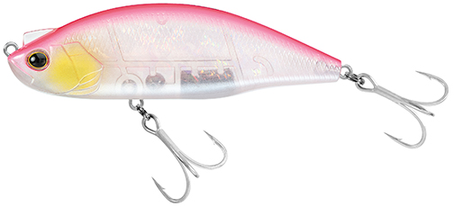 On a straight retrieve, DAIWA’s LAZY FA SHAD winds through the water like a relaxed baitfish – one destined to become a meal. The floating lure dives up to three-feet when engaged, precise depth dictated by the speed of retrieve and weight of the line, narrower pulling deeper.And, unlike a swimbait motoring with limited wobble, the LAZY FA SHAD rolls and shows its sides while in motion, broadcasting a subdued flash that says come and get me. The LAZY FA SHAD’s curious slalom action is produced by a conspicuous fin centered on the head of the bait. Sort of looks like a miniature aquatic rhinoceros. Despite the diminutive nature of the fin, though, it really moves the bait around.