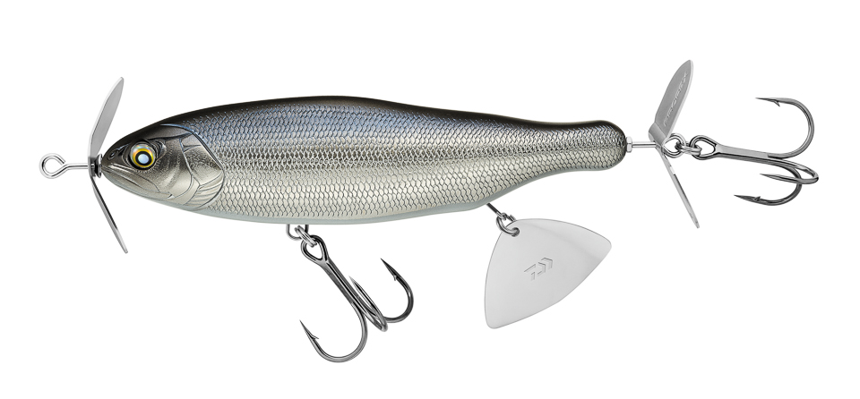 Introduced at ICAST, this bait was actually made with Muskie in mind, but bass anglers quickly recognized the Bessie’s multispecies application. Like a huskier version of a spybait, this lure comes with Custom Daiwa Extra Tough Parts that ensure it’ll stand up to whatever bites. While it’s built to bully its way through underwater weeds, the Bessie’s also a good bet for covering lots of water to draw in big fish. Think: deep points, when big bass target schools of gizzard shad.