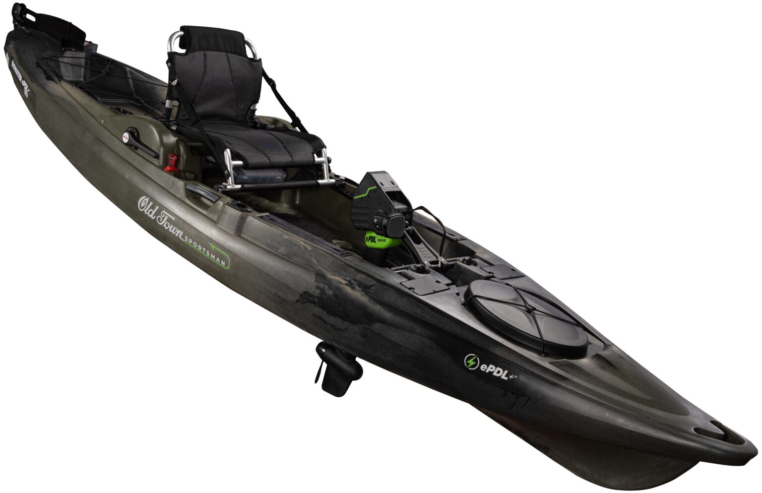 Available in Ember, Marsh and the all-new Steel Camo, the Sportsman BigWater ePDL+ 132 includes EVA foam floor pads and upgraded breathable seats for all-day comfort and support, a forward-facing rod holder and a branded tacklebox. Full-length accessory tracks paired with intuitive storage options allow full customization, while enhanced upgrades such as a wider stern tank well, larger cup holders and an improved offset shallow water anchor mount optimize convenience.
