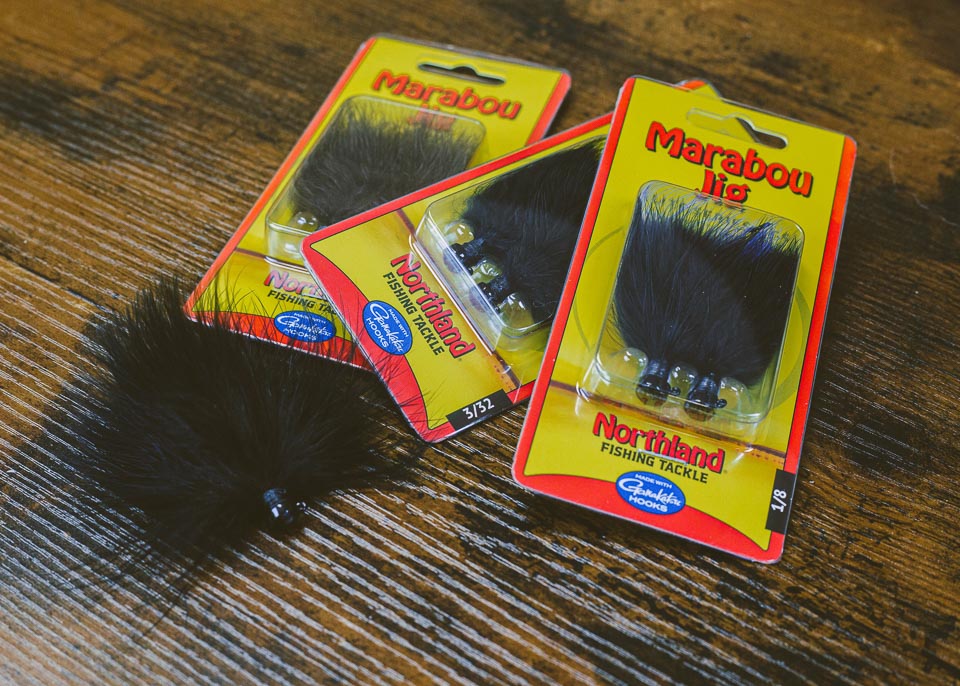 Still handtied, but now produced in mass, Northland’s Elite Series Marabou Jig features premium marabou feathers meticulously wound onto a strong, shockingly sharp, Gamakatsu® hook with bait keeper. They are available in three proven, earth-toned patterns and three sizes – 1/16-, 3/32-, and 1/8-ounce.
