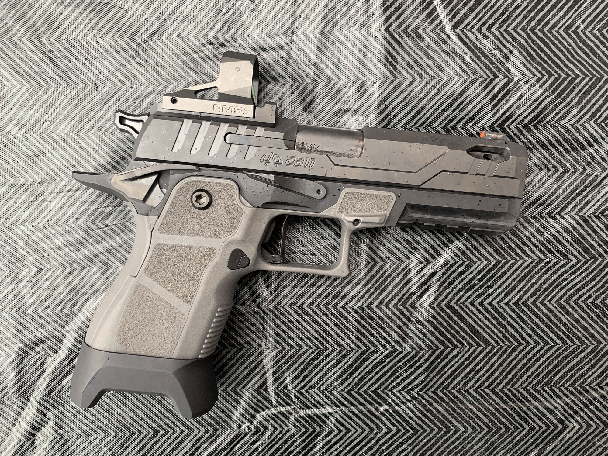 Several of the new handguns from SHOT Show 2024 are budget-priced 2011-style pistols. The MAC 9 DS from Military Armament Corporation, imported by SDS imports is a sharp-looking import with an all-black finish and nice grip texture on the polymer grip module. It ships with an OEM Checkmate mag, but is compatible with standard 2011-style magazines and the grip is capped with an aluminum magwell. It’s got a skeletonized flat trigger shoe, skeletonized hammer, ambidextrous safety levers, and some other features that you’ll see on pistols like the benchmark Staccato P. This model has front and rear cocking serrations and a removable rear sight and optic cut cover plate. The MAC 9 DS is compatible with RMR-footprint red dots, and brings a good feature set for the price. I put several magazines through this pistol at range day, and it’s a nice-shooting rig, especially for the price.