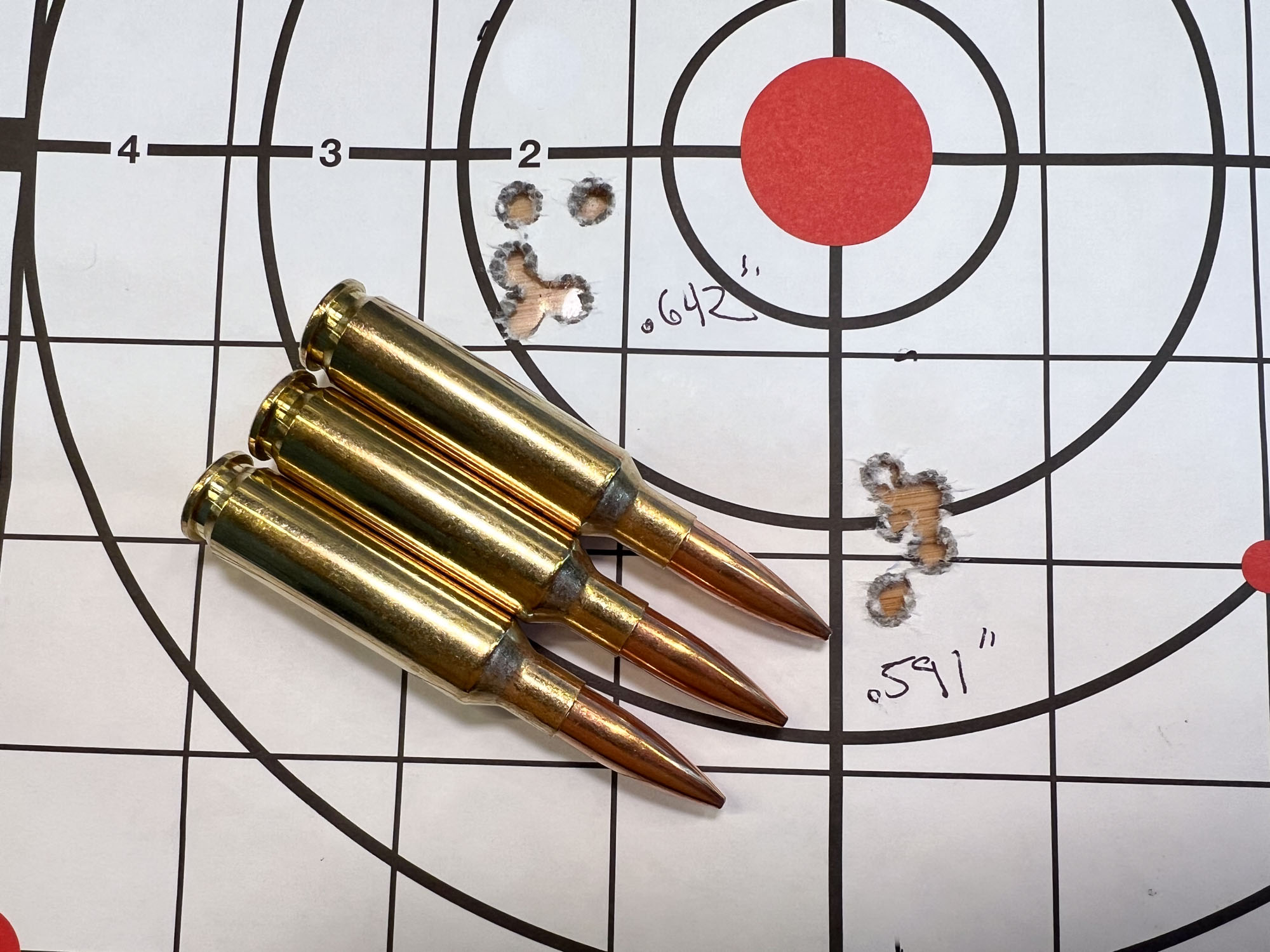 The velocities from the 140-grain match loads has been consistent, right around 2565 fps from the 22-inch barrel. The 140-grain Tipped Gamekings have a bit more pep, stepping out at 2630 fps.