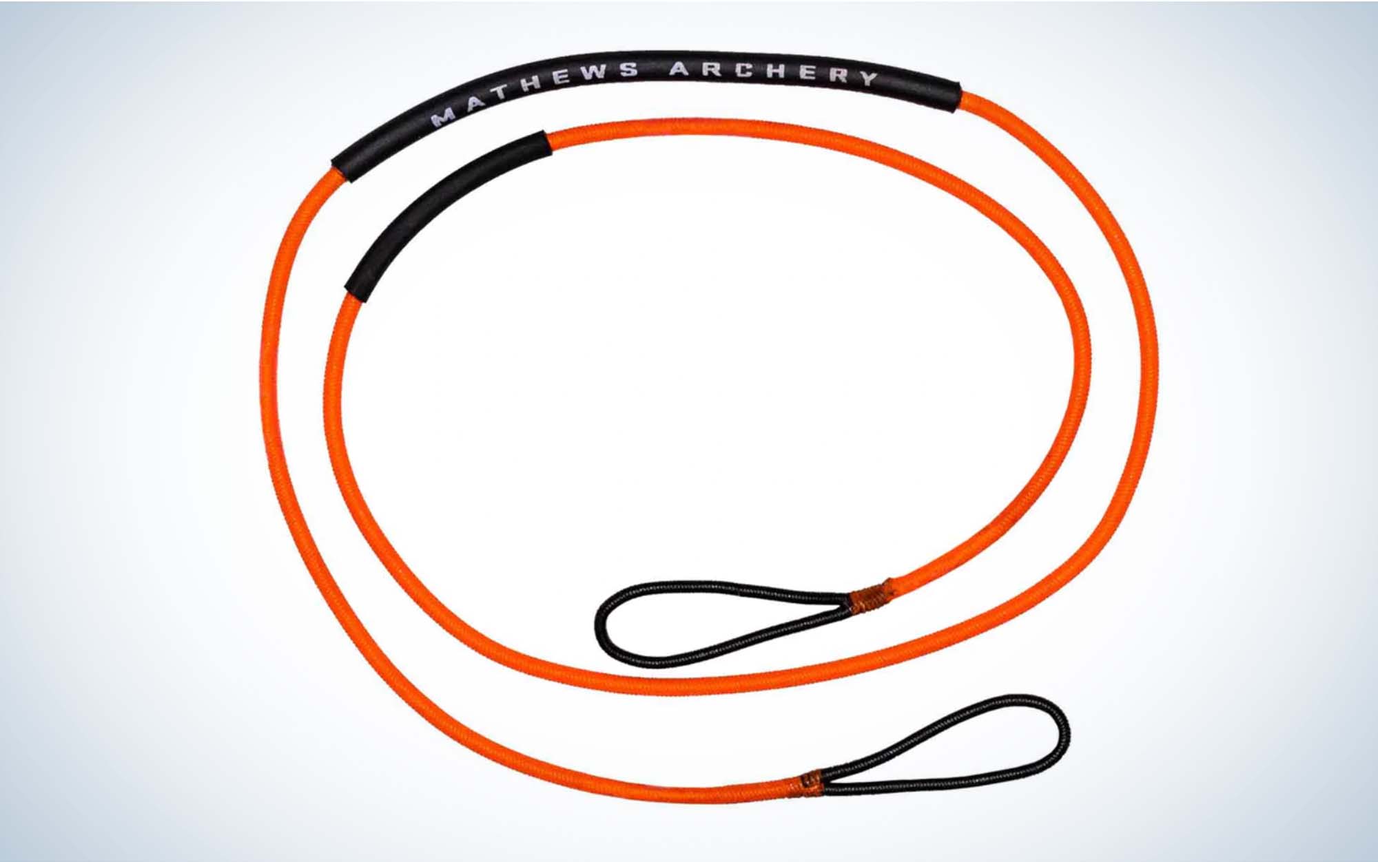 This is a cord designed specifically for the newer Mathews bows. It attaches to a post on each cam, which allows you to press the bow enough to put slack in the string and the cables. Once you have that slack, you can do the work that needs to be done.