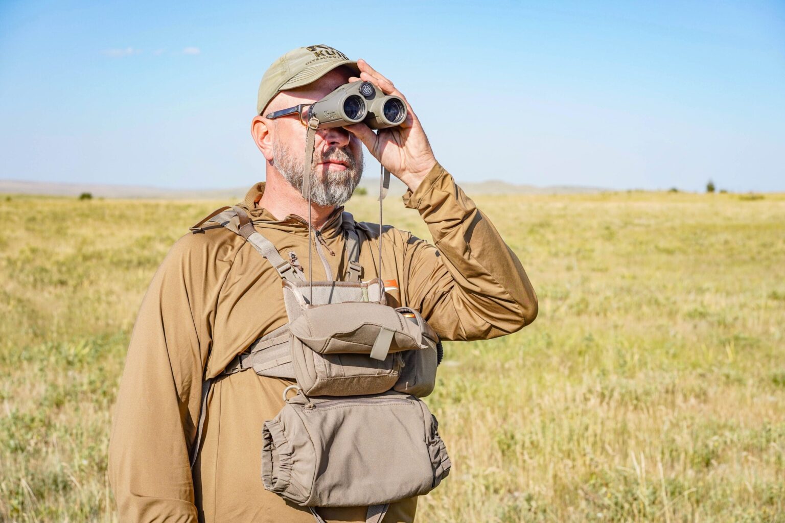 “The consensus pick as the top binocular harness in our field, the Eberlestock Recon offers excellent binocular protection, but its main asset is the ease with which accessories attach to the base unit. We added a laser rangefinder pouch to one wing, a fleece-lined hand warmer pocket below the optic pouch, a bear-spray pouch, and an accessory pouch that would be useful for a knife, ammunition, or a communications device.