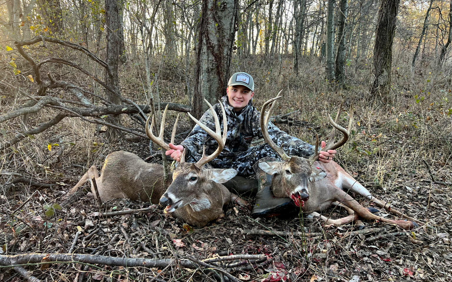 Having just experienced the wildest hunt of his life, Garrett looked at the two bucks piled on the ground but didn’t walk up to them just yet. Instead, he called his dad.