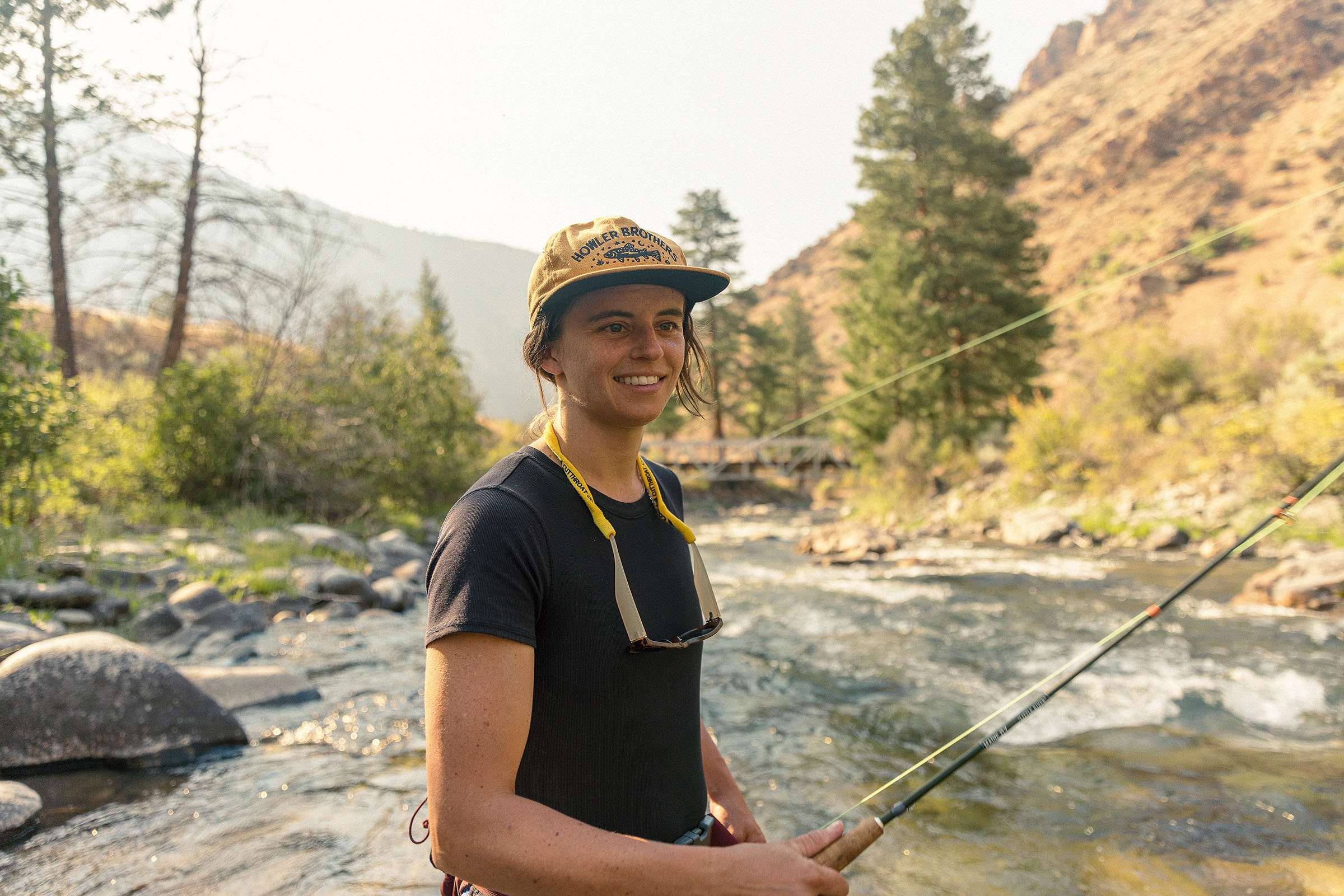 Amanda fishes in Camas Creek just below the burn scar for the 2017 Tappen Fire.