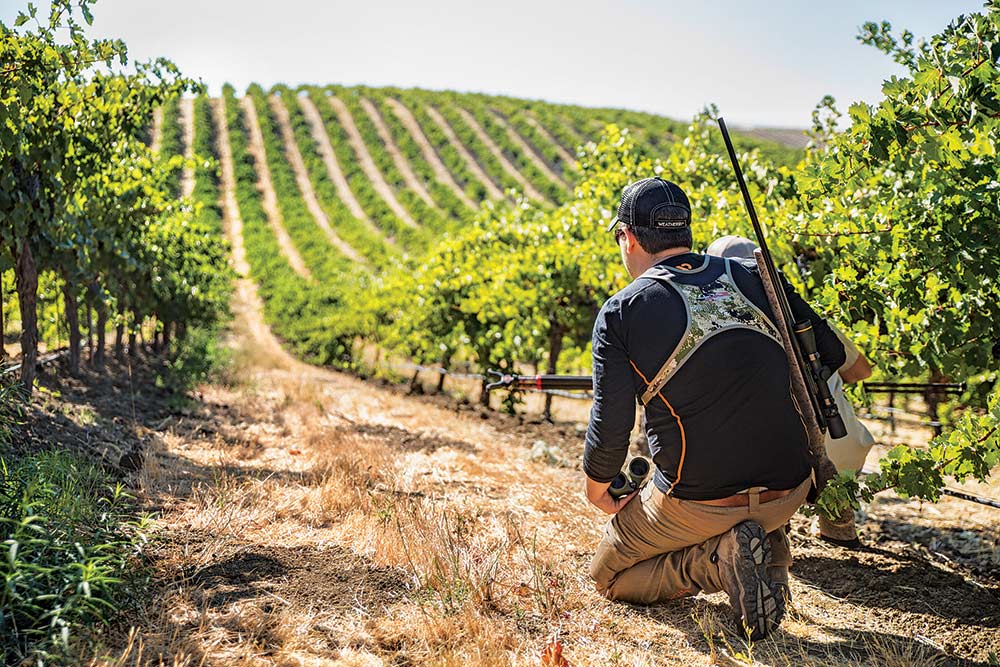 A hill towered over the land, and at its peak a lone oak loomed like a sentry. The tree provided an escape from the punishing sun, and the hill gave us a vantage of the grounds below where blacktail deer were also seeking shade. Their shelter, though, came from a different source: the edges of 4,000 rows of grapevines across 620 acres of central California wine country. We glassed up and down the vines for antlers, tails, and any hint of movement. As if the setting hadn’t already made it clear that this was not a typical hunt, my guide, Ryan Newkirk, sealed the deal when he shared a quirk about these deer.