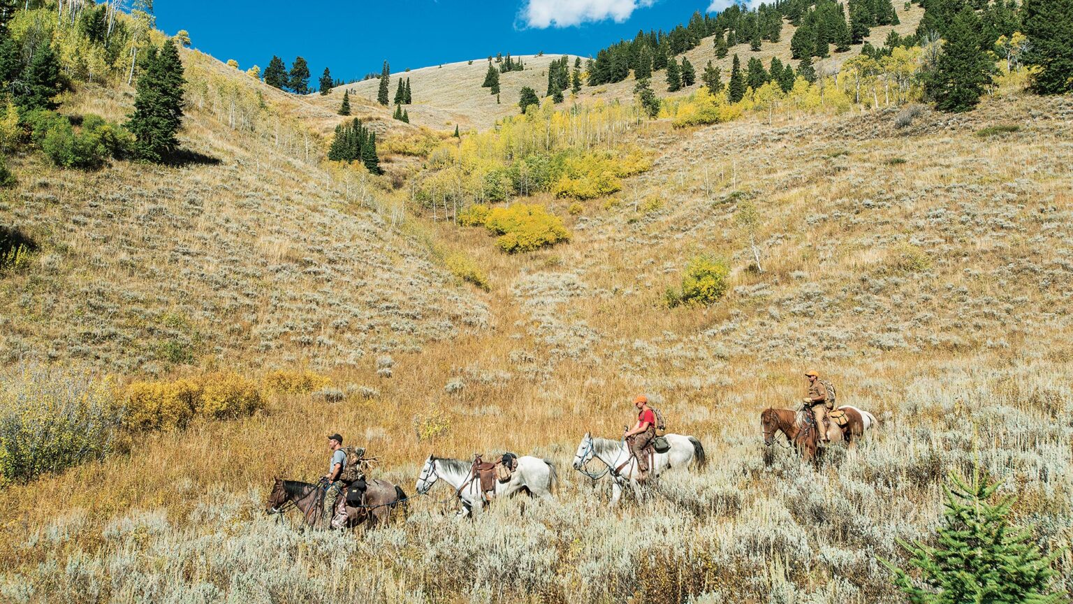 “IT’S A DIFFERENT race of deer up there,” Tim Trefren said as we pulled dusty saddles and sweaty blankets off our horses. Tim’s mount was a classy roan named Red. They called mine Propane Tank, both for his rotundity and for his habit of releasing an audible quantity of gas with nearly every step. “Up there” was a high ridge above the wall tents and lodgepole corral of Tim’s remote Wyoming hunting camp. We had just ridden down that steep ridge in the dark, our horses’ hooves throwing sparks every time their shoes nicked a rock in the trail. To me, in the dark atop a farting horse, the sparks looked like terrestrial versions of the shooting stars we had seen early that morning as we ascended the ridge, the Milky Way smeared across the sky.