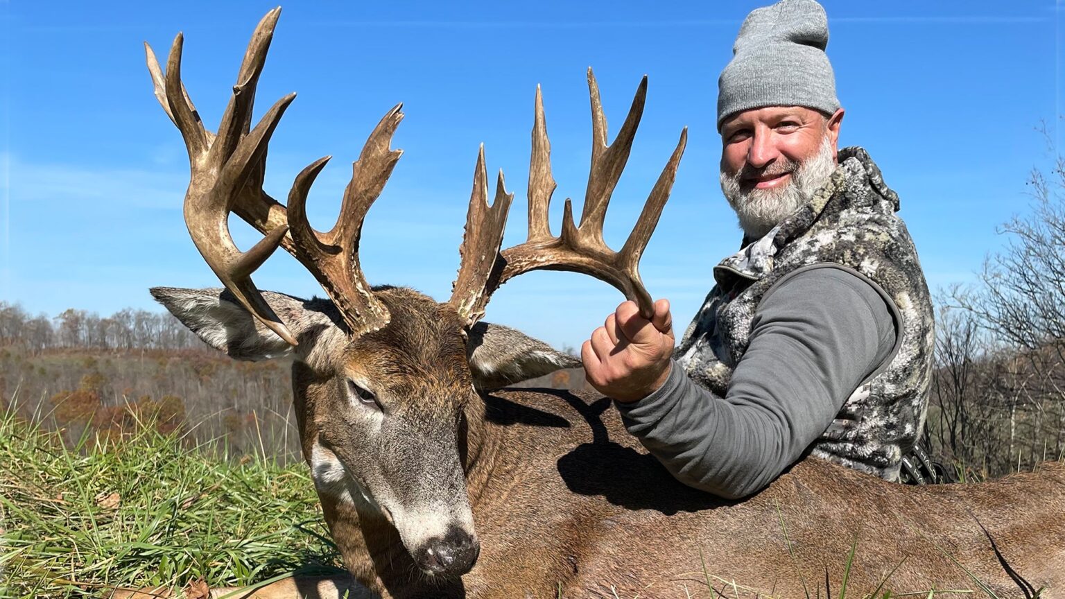 The next morning, I was in the same spot and I had the bow in my lap as I knew I might not hear him coming. At 7:45 I looked up and saw those antlers heading my way. I never tried to get up. I just drew the bow and watched him walk into my shooting lane. I grunted to stop him and the arrow was on its way before he came to a complete stop. I made a perfect shot and watched as he tore through the woods, then I heard him crash. Even though I knew he was dead, I sat up there for a long time, just soaking it all in. I’m a retired police officer and the woods has always been the place I go to reset—and now I had a huge buck to celebrate. So I wasn’t rushing anything!”