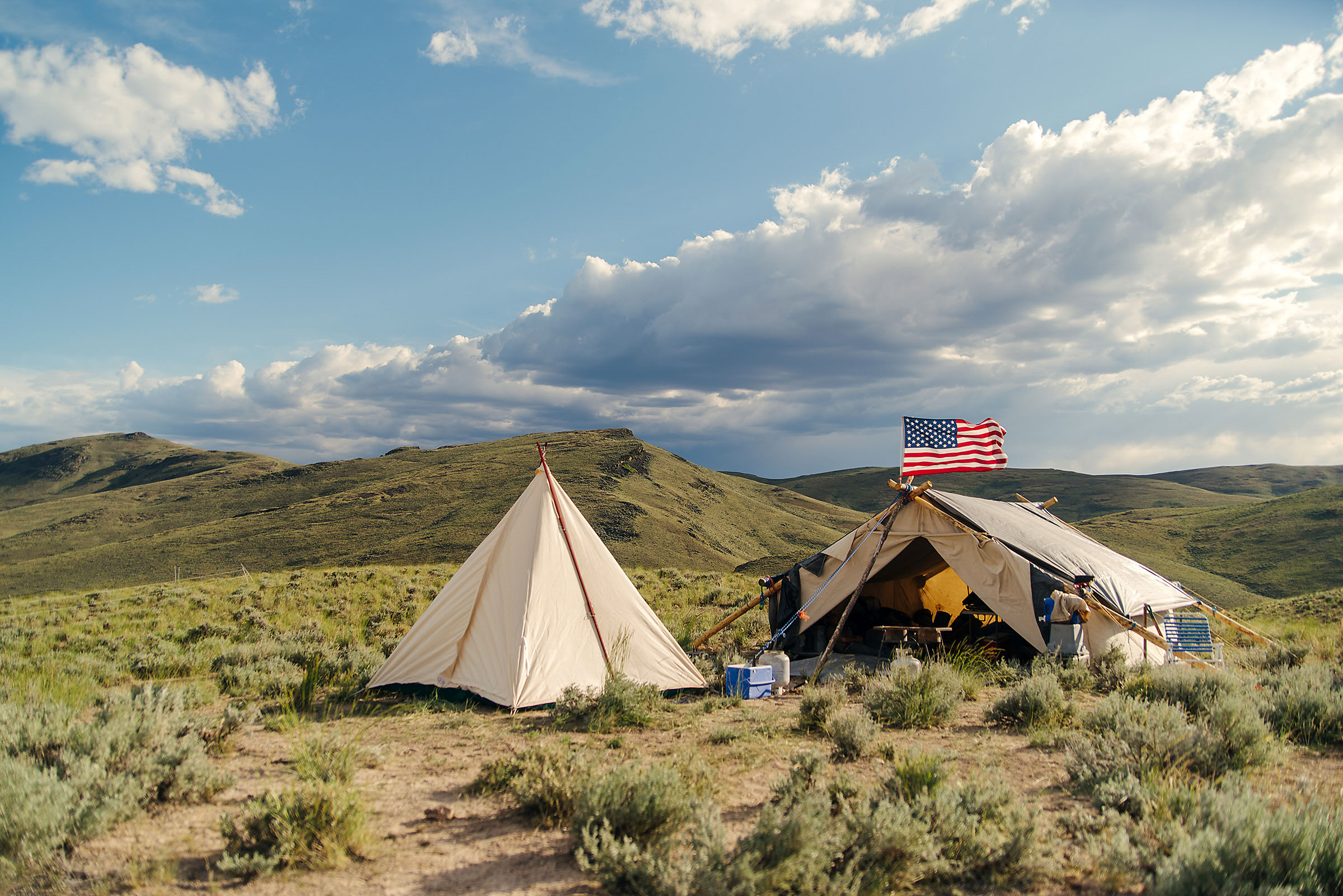 At night, the riders corral the cattle into a small pasture surrounded by an electric fence near one of 11 backcountry camps they set up each summer. The camps each consist of a communal canvas cook tent where the range riders eat, surrounded by a handful of canvas tent sleeping quarters. The “crew boss” tracks the cattle’s movements via a GPS unit that pings every 10 minutes, generating a map of where they’ve been. However, the Elzinga women don’t need a map directing their movements anymore. They move across the landscape from memory. “These gals know every rock up there,” boasts Glenn.