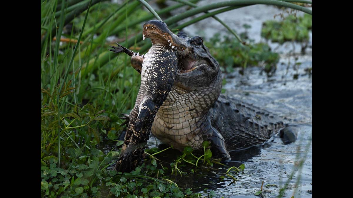 It’s unclear what the smaller gator was up to ahead of the attack, but it’s not the first time we’ve reported on alligator cannibalism, which is a well-known phenomenon. Last fall, a small gator was hunting an egret—when it turned into the hunted. And last spring, golfers witnessed the cannibalism of a 6-foot gator by a 20-footer.
