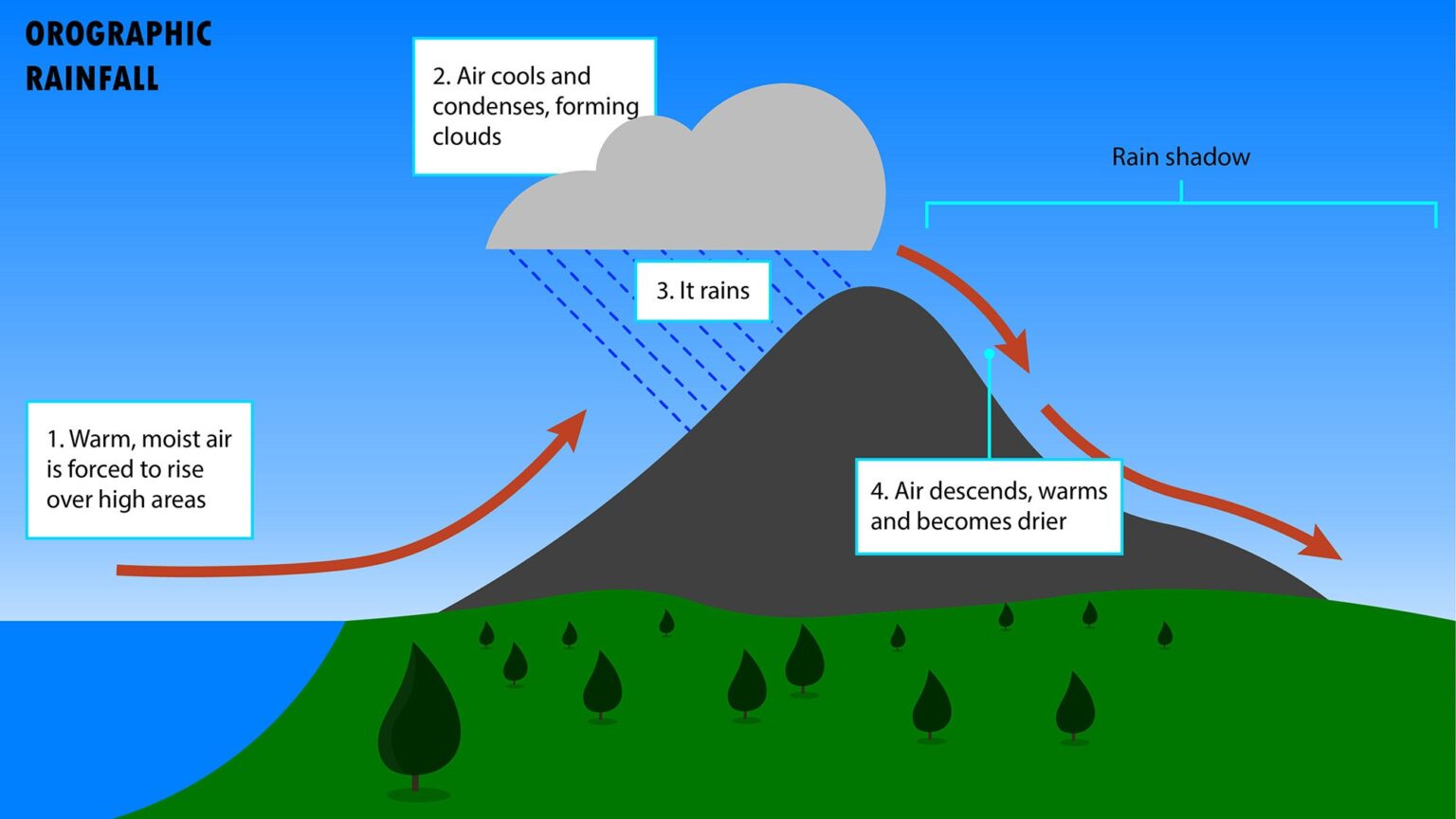 So, what exactly is a rain shadow, and what causes one to occur? Imagine wind traveling from west to east, picking up evaporating moisture as it crosses over the ocean. When that air mass collides with something tall—like a mountain—it has nowhere to go but up. In slightly more scientific terms, it undergoes what’s known as an “orographic lift.”